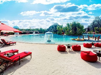 好评房间设施齐全,超大浴缸很舒服。景观园区大,开车来比较方便。到冯小刚电影公社方便